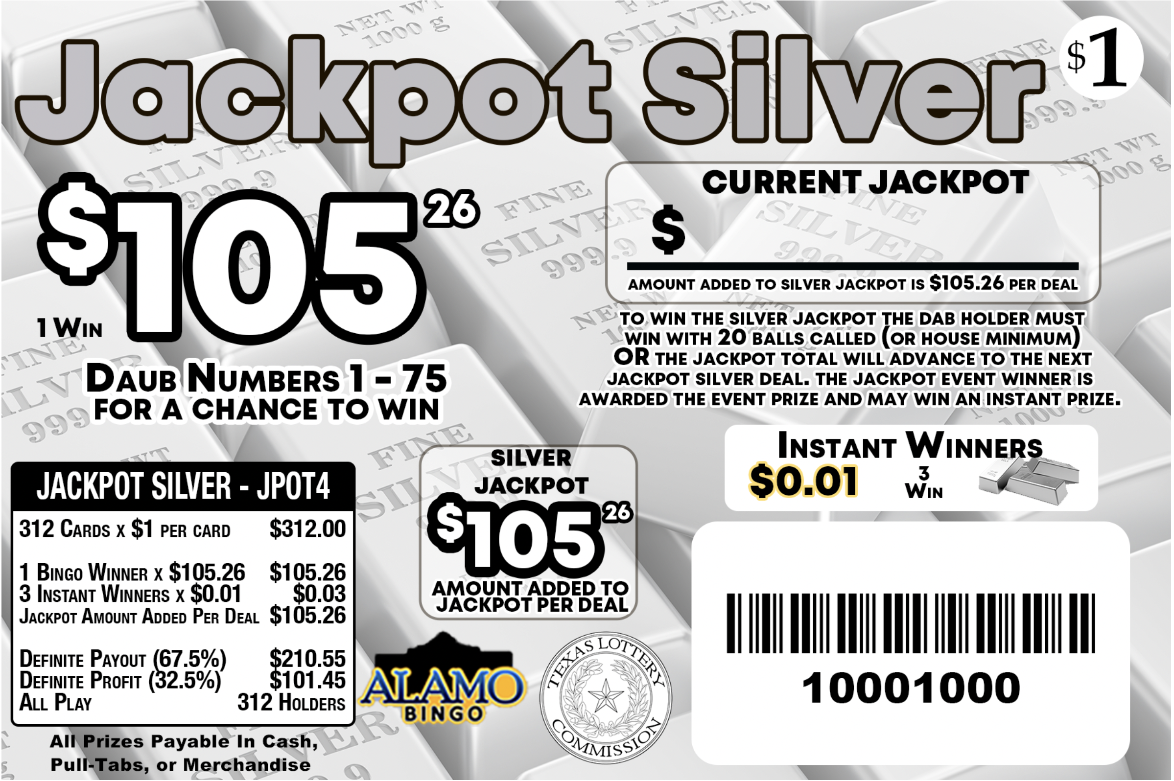 ALAMO: JACKPOT SILVER (314ct) GOLDEN EXCLUSIVE quantity