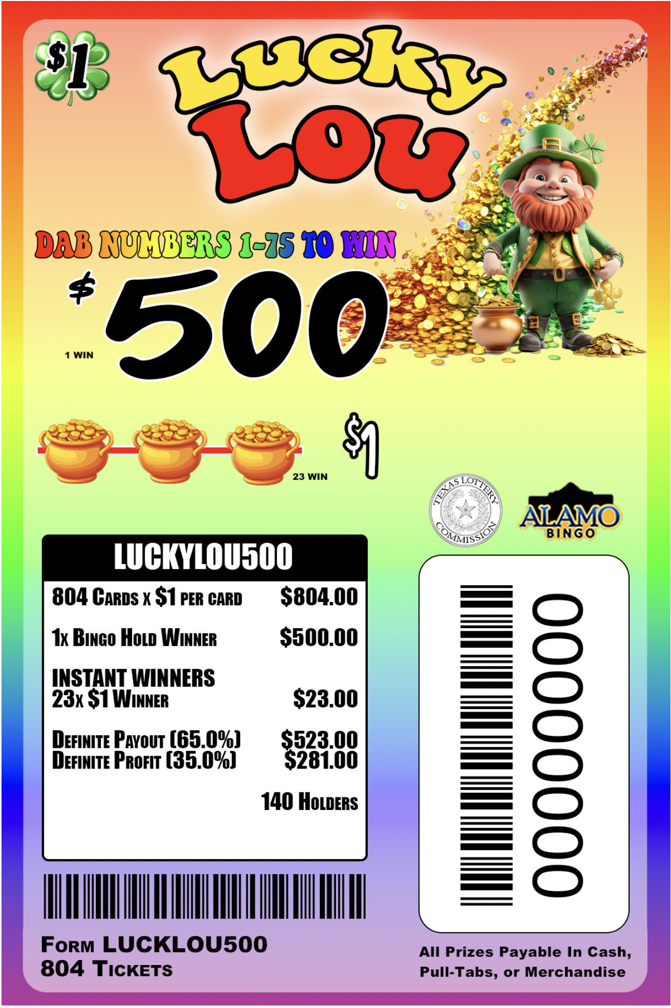 ALAMO: LUCKY LOU $500 (804ct)