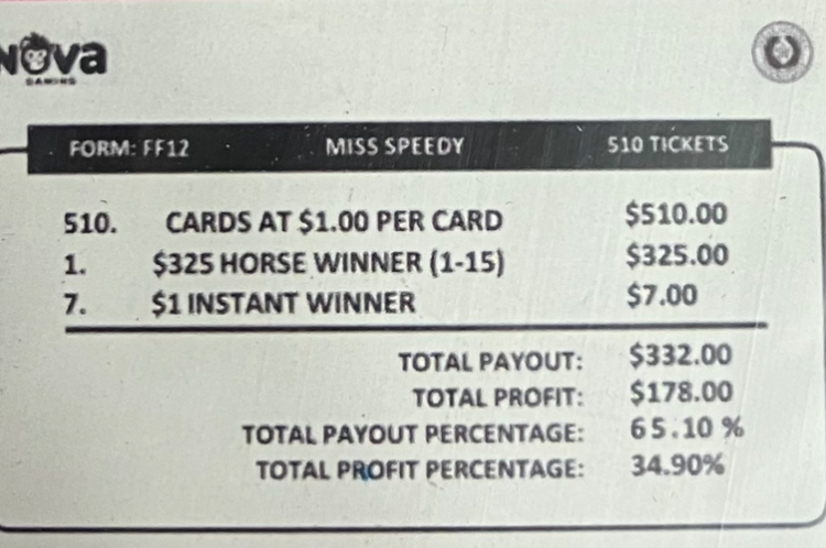 $325 Race Card